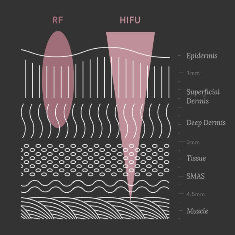 - هایفو: میتواند به عمق لایههای پوست نفوذ کند و حتی لایههای عضلانی سطحی (SMAS) را هدف قرار دهد.